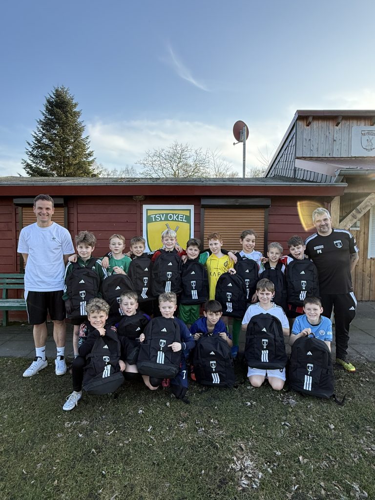 Große Freude bei unserer E-Jugend (Jahrgang 2016/2017): Die Mannschaft vom TSV Okel darf sich über brandneue Adidas Rucksäcke freuen! 🙌
